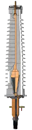 Oil-immersed (cubicle) Terminations are available in operating voltages from 138 kV up to 345 kV. The Terminations utilizes a porcelain bushing specifically designed to be mounted within a metal cubicle filled with dielectric oil, typically inside transformers. The mounting plate of the Terminations can be custom designed to suit the specific requirements of the cubicle interface.